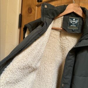 Zip up front with added warmth of snapped buttons.