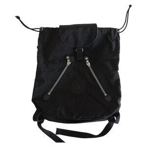 Timeless and functional, this heritage Kipling backpack is crafted from the brands signature lightweight, water?resistant nylon in classic black. The design features a secure drawstring closure with a top flap and buckle, plus adjustable shoulder straps for a comfortable fit. Two exterior pockets with zip closures keep essentials within easy reach, while the spacious main compartment offers ample storage for daily use or travel. Also features a hidden side zip pocket. Accented with Kiplings iconic logo and durable hardware, this versatile piece blends casual style with long?lasting practicality a true everyday classic. Please view photos for full description and measurements.