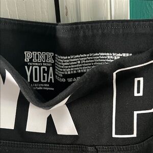 Full length Black yoga pants size large. PINK all around waistband