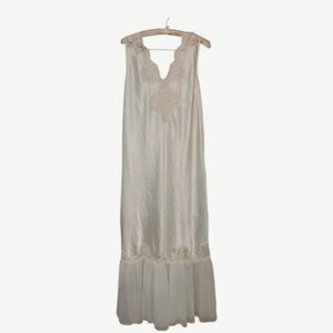 Exquisite Vintage Blanche Satin & Lace Gown Nighty Glam L