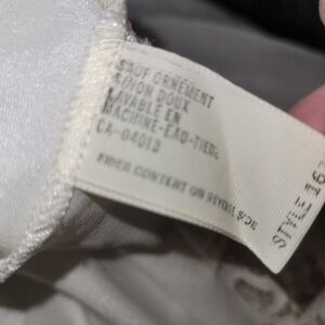 made in USA. 100% polyester. kept in great condition! beautiful lace accent. bust 44" hips 50" length 53". excellent condition with no holes or stains and from a smoke free and pet free home