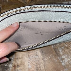 Kate spade Leila convertible wristlet handbag lime sherbert pebbled leather - new without tags took them off and never used silver and very light mint greenish blue color so pretty pastel color for summer or any season! Great for your phone and small essentials, strap can be removed for a clutch convertible option