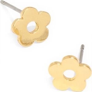 Made with goldtone-plated recycled brass, these tiny daisy-shaped studs are a fun retro addition to any lobe look.