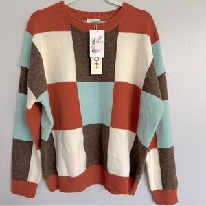 Ott Oversized Multi-colored Checkered Sweater NWT size XL
