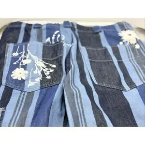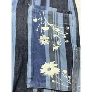We the Free Free People Women's XS Black Blue Striped Cropped Floral Jeans