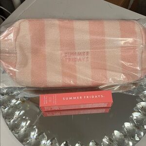 Summer Fridays Pink Dew Terry Bag with Pink Sugar Lip Butter