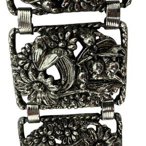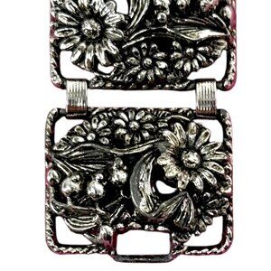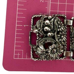 Vintage Sarah Coventry Floral SilverTone Panel Bracelet Antique Garden Sunflower