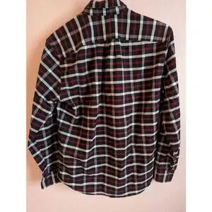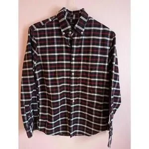 J. Crew Mercantile Flex Oxford size Medium. This plaid shirt in red, white and blue is a classic, traditional, cotton button down collar shirt.