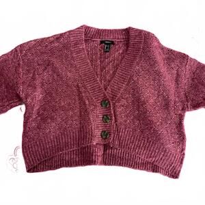 Forever 21 Berry Maroon Button Crop Cardigan- Size Small