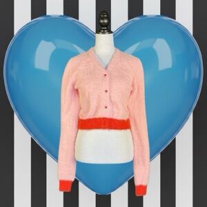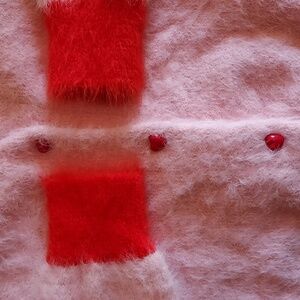 dELiA*s by Dolls Kill Pink & Red Fuzzy Heart Button Cropped Long Sleeve Cardigan XXL