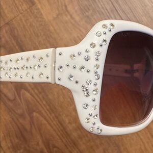White version of the Season one episode 2 sunnies Hannah Montana wears. Chic and stylish white sunglasses adorned with sparkling rhinestones. Great condition!