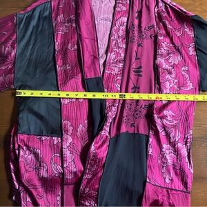 Vintage Units Silk Blend Purple Magenta Patchwork Kimono Cardigan Boho Sz. LARGE