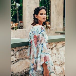 Sukiso Women’s Nomade Kimono In Botanica Long Duster Vacation Pool Resort MEDIUM