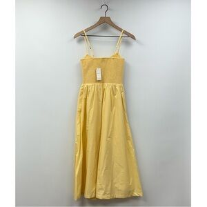 NWT Abercrombie & Fitch Sydney Smocked Drop Waist A-Line Midi Dress Yellow Small