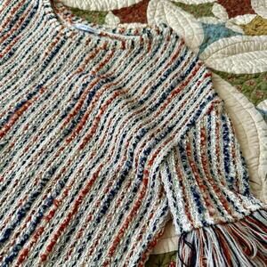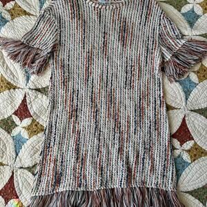 Zara fringe jacquard tweed dress white, orange, and navy striped mini dress