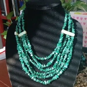 This stunning green beaded necklace adds a touch of elegance to any outfit. Perfect for any occasion.