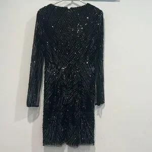 Gianni Bini black bead Sequin embellished Bodycon Mini cocktail Dress size 2