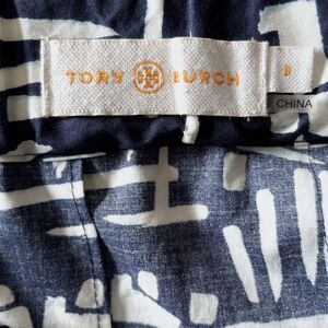 Tory Burch Navy A-Line Pleated Skirt Blue Off-White Abstract Boho, Women Size 8