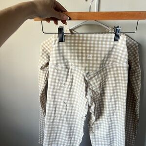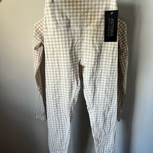 Stylish beige checkered set from Astoria Activewear. Includes a long-sleeve top and matching bottoms. Perfect for casual outings or workouts.
