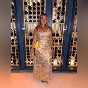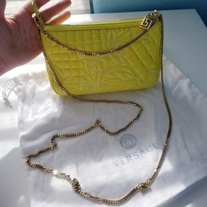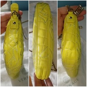Versace. Elegant yellow quilted design. Features intricate stitching. Perfect for stylish outings. AUTHENTIC
