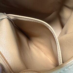 Stylish Longchamp hobo bag. Soft tan color. Perfect for everyday use. Has some very light small spots on the exterior. Inside has some small stains at the bottom of bag, and handle has 2 minor areas of cracking. All shown in photos. Still in Great condition, no holes, handle is very well maintained. Comes with the Dust Bag. Please see photos for details.