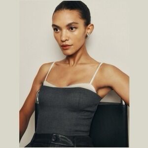 Reformation Women's 2 Melanie Camisole Dark Gray Cream Top - Excellent