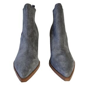 Marc Fisher Gray Suede Pointed Toe Western Block Heel Ankle Boot Size 8.5