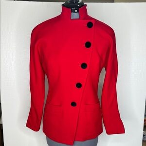Vintage Christian Dior Red Women's Wool and Velvet Blazer