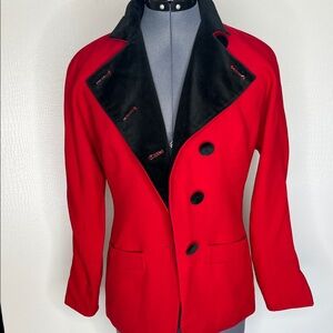 Vintage Christian Dior Wool and Velvet Blazer Red and Black