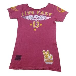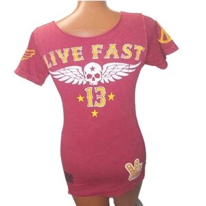 Affliction Y2k Old Glory Flag Baby Tee Woman Sz Med Distresed Red Skull Wings