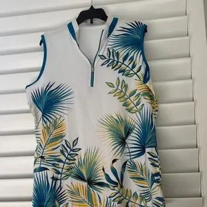 Tail Activewear Women's Sleevelless Tropical Leaf Print Golf Top: Sz: L; EUC