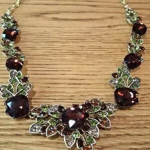 This stunning necklace features intricate floral designs in gold with striking dark red, almost burgundy accents. Perfect for special occasions! See listing photos for length reference. NWT. Bundle with another item for a bundle discount!!