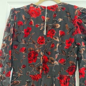 NEW ASTR The Label Floral Red Velvet Burnout Sheer Black Midi Dress V-Neck Sz S