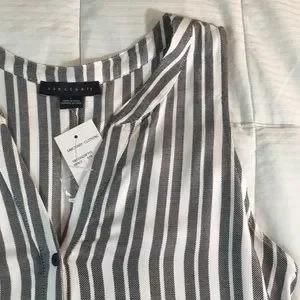 New with tags! 20” chest, 23” front length, longer in the back. Tie front detail. Trendy!