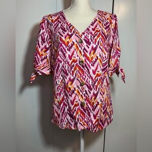 Emily Daniel’s Pink/Red/Orange Blouse Women’s Size L Button Down