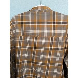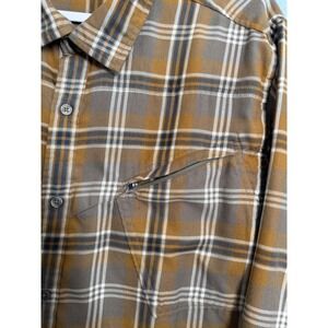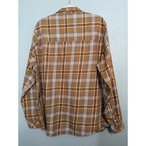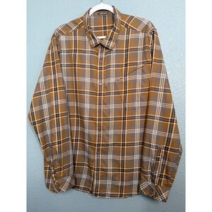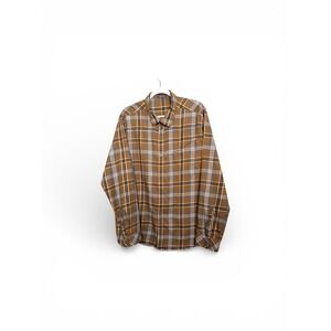 TOAD&CO Mens Flannel Plaid Button Up Shirt Cotton XL Brown Navy Western FLAW