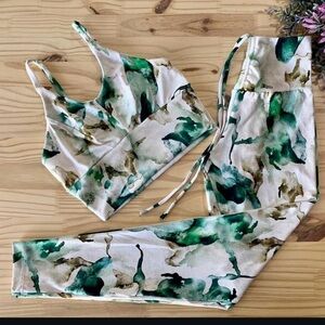Elevate your style with these chic women's leggings featuring a stunning abstract print. Perfect for any occasion, these leggings offer comfort and flair. The unique design combines shades of green and brown, making them a versatile addition to your wardrobe.