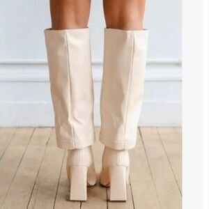 NWB. Step out in style with these elegant cream knee-high boots. Perfect for any occasion, these boots offer both comfort and sophistication.