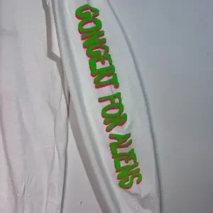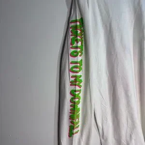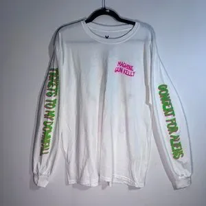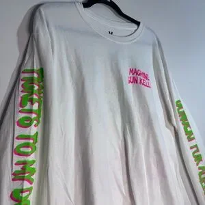 Official MGK long sleeve shirt with neon sleeve text and large alien graphic on back. Great for concerts, streetwear, or casual wear.