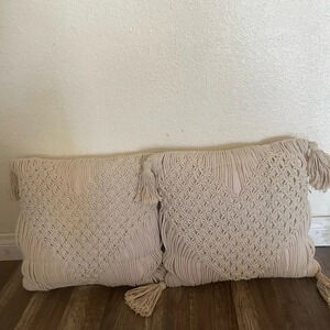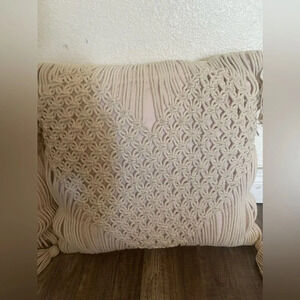 Macrame Heart Shaped Square Throw Pillow Cream - OpalHouse Valentines Day