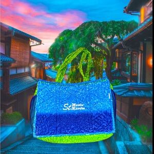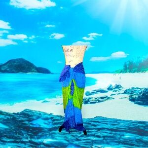 Beautiful zipper bag/sarong/scrunchy from St Maarten. Lime grn/Ocean blues.