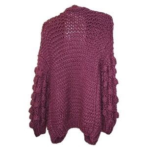 Sage The Label Mina Cardigan Med Lg Burgundy Purple Bobble Fuzzy Cable Knit Nwt