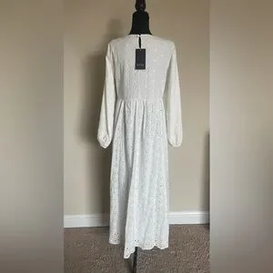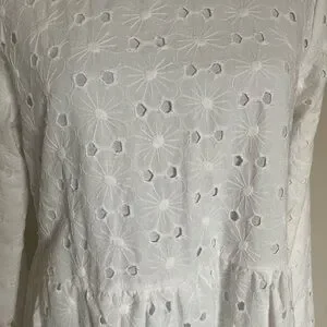 This elegant white eyelet dress is perfect for any occasion. Its delicate design offers a timeless look. Enjoy comfort and style with this beautiful piece.