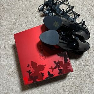 Elegant black heels with ruffle details. Perfect for a dramatic look.