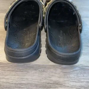 Skechers x Snoop Dogg Black Bling Clogs w/ Charms & Gold Chain Slip Ons Men’s