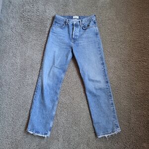 Excellent condition. The frayed edge makes them really cool. Washed once - hung dry.