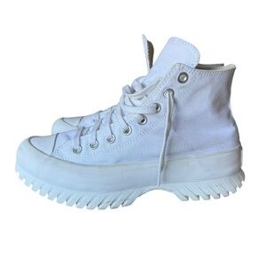 Converse CTAS Lugged Platforms Sneakers in White, Women’s size 9. Condition is pre-owned, Great Tread, light scuffs to the mid-sole area, canvas is crispy white with no stains.