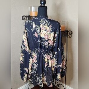 Chic NWT Suzanne Betro blouse with pink/black floral design. Long sleeves and cinched waist elegant style. Perfect for any occasion. NWT. Size XL. Smoke-free, pet-free home