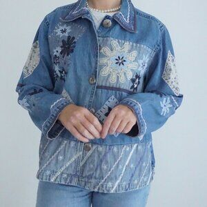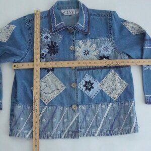 Vintage Keren Hart Blue Patchwork Button Up Lightweight Denim Jacket Xl