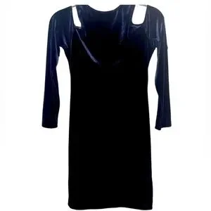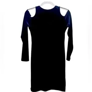 Aqua Velvet Cold Shoulder Dress in Navy Blue Size Large